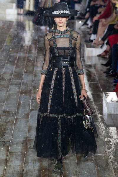 This resort season, Chiuri took inspiration from the escaramuza riders; female rodeo riders, whom she had flown all the way from Mexico to kick off (pun intended) the Dior Resort 2019 show, with a synchronized galloping performance. The show was held at Chantilly, a town known for its delicate lace, which had a strong presence in the resort collection.