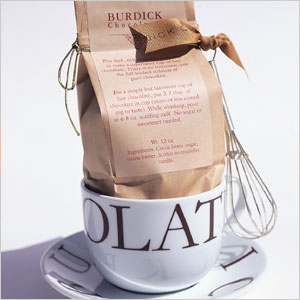 Directions: Simmer the milk, cream and sugar together until just boiling. Stir in the chocolate until melted. Don’t let it boil. Serve warm in mugs.