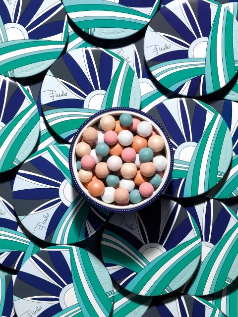 The combination of six colours flawlessly even out every skin tone. Blue and pink to counter yellow tones, beige and orange to warm up the complexion and create an even tan and ivory and white gold to reflect light.