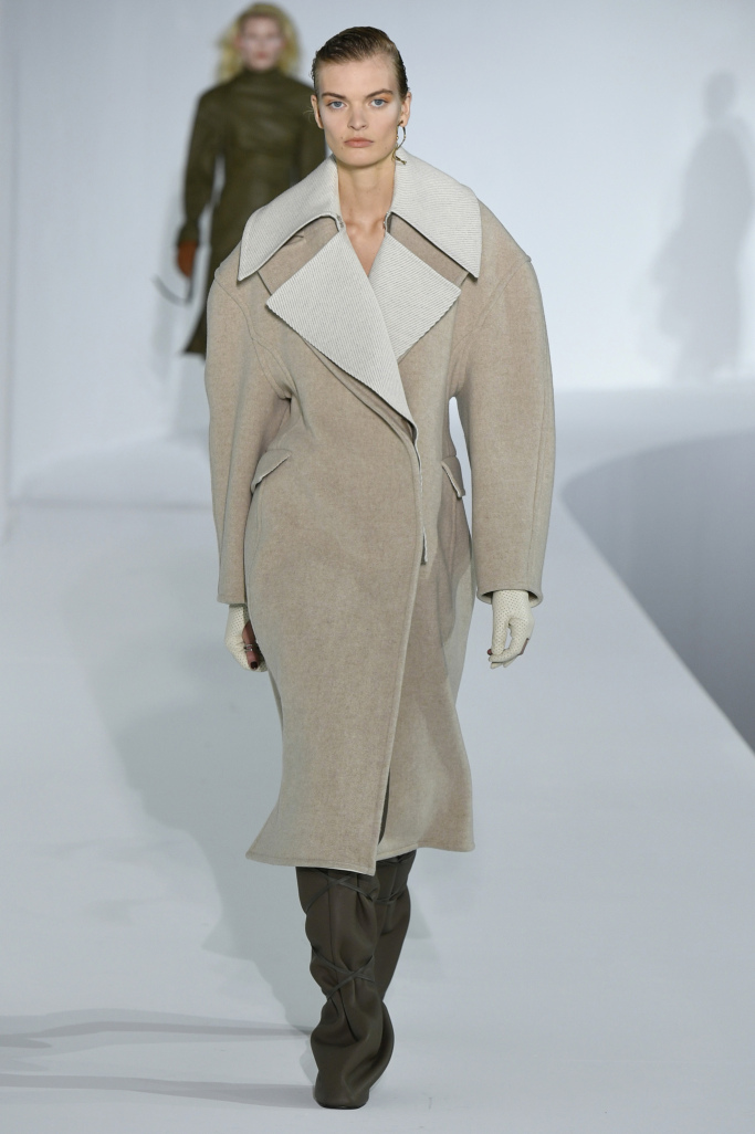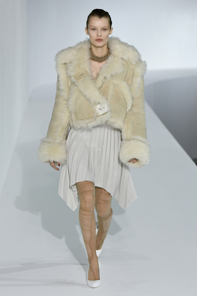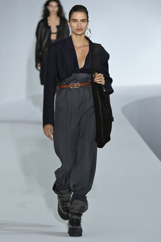 From oversized power suits, suits which were distorted in shape, to the exaggerate reformation of the female silhouette created by translucent damask print fabrics. Despite the sophistication behind some of the pieces, certain drapes and ruching heightened the sex appeal in a way that felt a bit peculiar to what Acne Studio’s used to – then again, it was very much embraced.