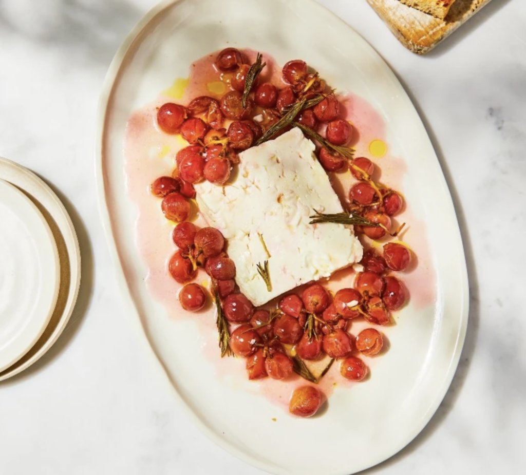 Baked feta with roasted grapes and rosemary