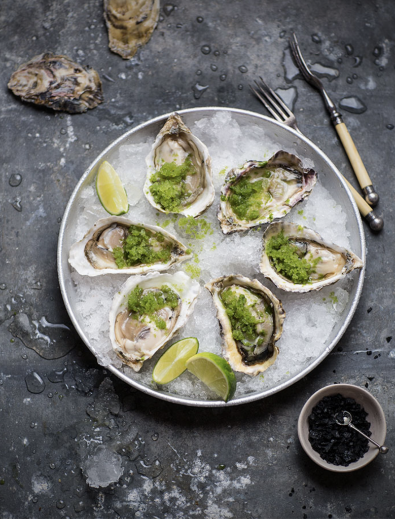 Oysters With Spicy Cucumber & Lime Granita
