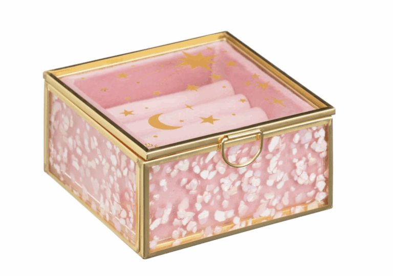 Keep your rings, earrings, and treasures looking chic with the Glass Celestial Jewellery Box, Pink from B&M. Featuring a delicate celestial print and a compact glass design, this box is perfect for styling on your bedside or vanity. For teens who love adorable decor with a little magic, this is a fab choice.