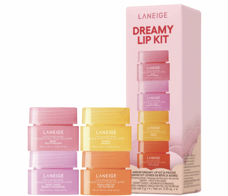 Treat your lips to a sleepover snack with the Laneige Dreamy Lip Kit, a set of four mini lip sleeping masks in ultra-sweet flavours: Berry, Mango, Sweet Candy, and Peach Iced Tea. Formulated with a fruity Berry Fruit Complex™, antioxidant Vitamin C, and nourishing coconut oil, it hydrates, smooths, and restores your lips overnight for a velvety-soft pout.