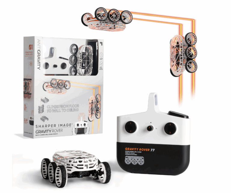 Prepare for action with the Gravity Rover, an anti‑gravity remote‑control vehicle that defies the rules. It climbs walls and even ceilings, with LED lights and a sleek design built for serious fun. Ideal for tech‑loving teens who want a gadget that’s bold, wild, and ready to take playtime to the next level.