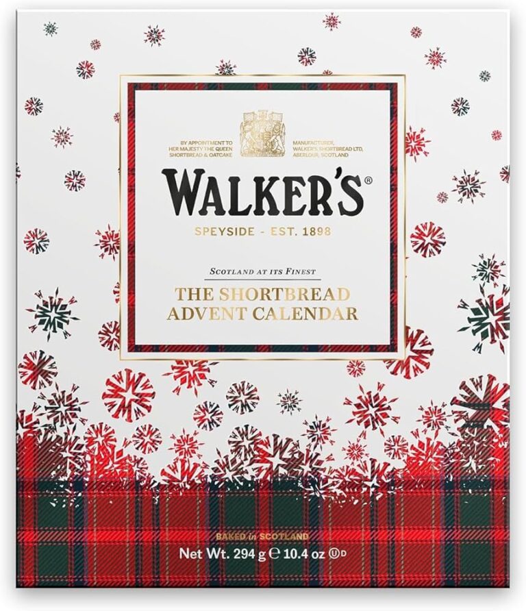 The Walker’s Shortbread Advent Calendar is a buttery countdown to Christmas with 24 individually wrapped classic Scottish shortbread treats. It includes favourites like all-butter fingers, salted caramel squares, rounds, hearts, and a festive star.