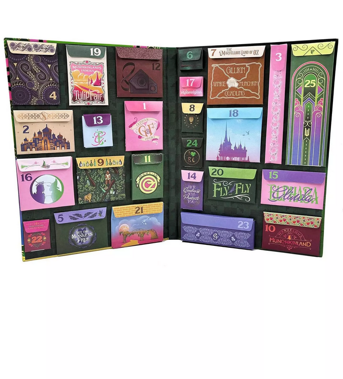 Celebrate the holidays and Wicked with this official advent calendar loaded with exclusive Wicked surprises inspired by the film. From patches to keychains, buttons, magnets, stickers, and more, this advent calendar is a magical way to celebrate the holidays. Start every day with a gift from the Land of Oz as you make your way through the holiday season! Count down to the holidays or any other special occasion and receive 25 days of Wicked-themed collectibles by opening a pocket each day. Features high-quality collectible items-patches, magnets, coasters, an Elphaba and Glinda friendship bracelet, and more-that are designed to last so that you can show off your love for Wicked year-round. Perfect for Fans – with items inspired by Shiz University, the Emerald City, Munchkinland, Elphaba Thropp, Glinda Upland, and more, this advent is a must-have for any fan of Wicked.