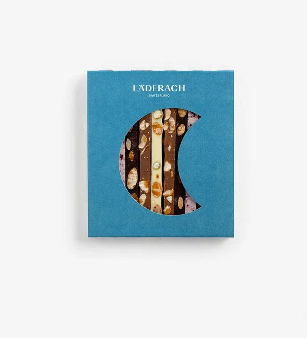 Inside, you’ll find an exquisite assortment of milk, dark and white chocolate pralines with a variety of flavours and textures from nutty and creamy fillings to delicate truffles and smooth ganaches. Each chocolate is made using premium ingredients, including cocoa sourced directly from farmers and Alpine milk used in Läderach’s signature chocolate recipes.