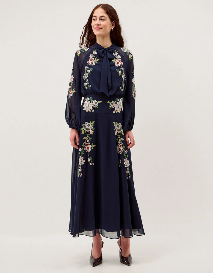 Annika Floral Embroidered Chiffon Midi Dress Blue £120