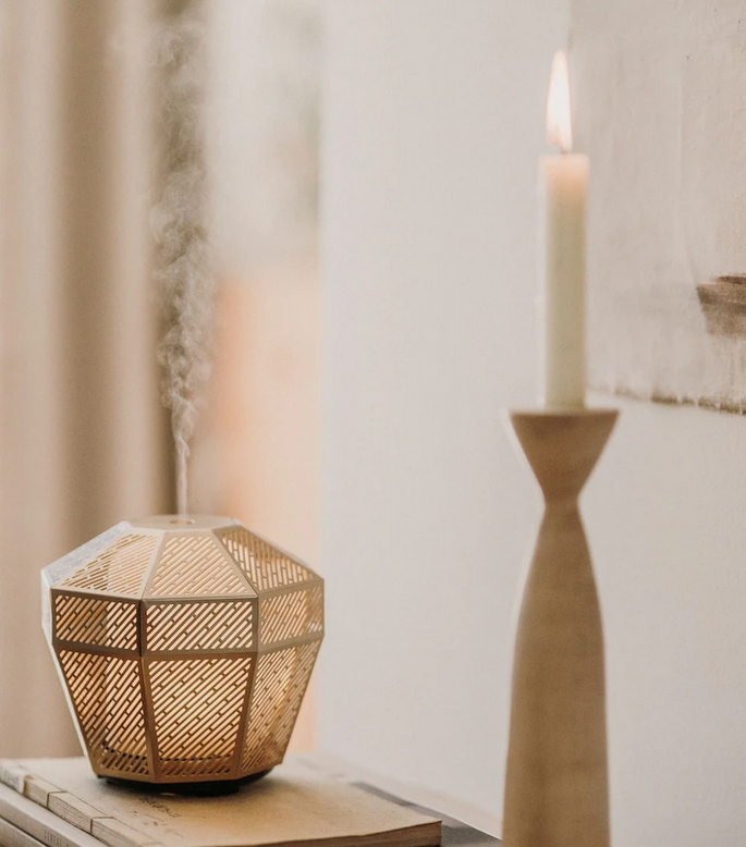 Add a luxurious and relaxing touch to your home interior. The Luminarie is crafted with a gilded outer case with an intricate geometric design, The warming ambient light casts patterns of shadow through the cover to create a calming sanctuary, releasing tension and calming the senses. Fill your home with irresistible fragrances with a mesmerising aromatherapy mist.